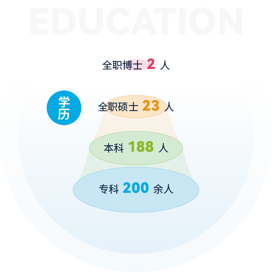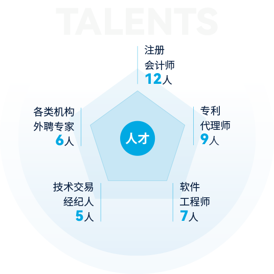 截止2024年,公司擁有各類人才400余人,其中全職博士2人,全職碩士23人,本科188人,專科200余人,注冊會計師12人,專利代理師9人,軟件工程師7人,技術(shù)交易經(jīng)紀(jì)人5人,南京企服中心等各類機構(gòu)外聘專家6人,公司還和南京大學(xué)、東南大學(xué)、南京農(nóng)業(yè)大學(xué)、南京信息工程大學(xué)、南通大學(xué)、江蘇開放大學(xué)等建立了良好的合作關(guān)系。